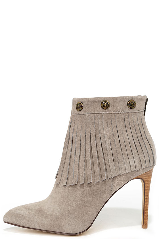 Very Volatile Massy Grey Suede Leather High Heel Fringe Booties